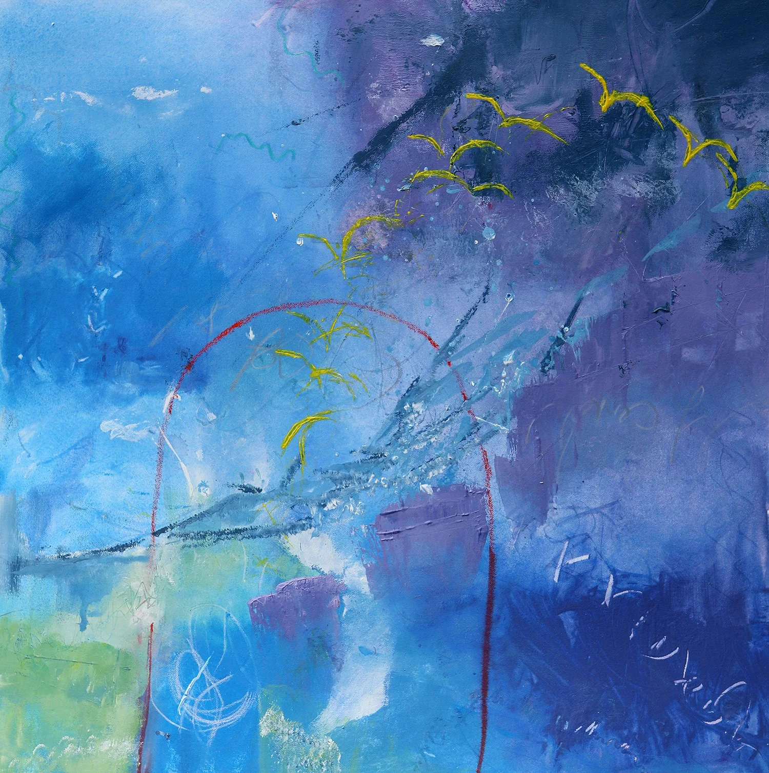 From a series of waterbased paintings on canvas, inspired by aerial routes and the patterns of birdsong ever present on daily walks through the South Downs National Park.
