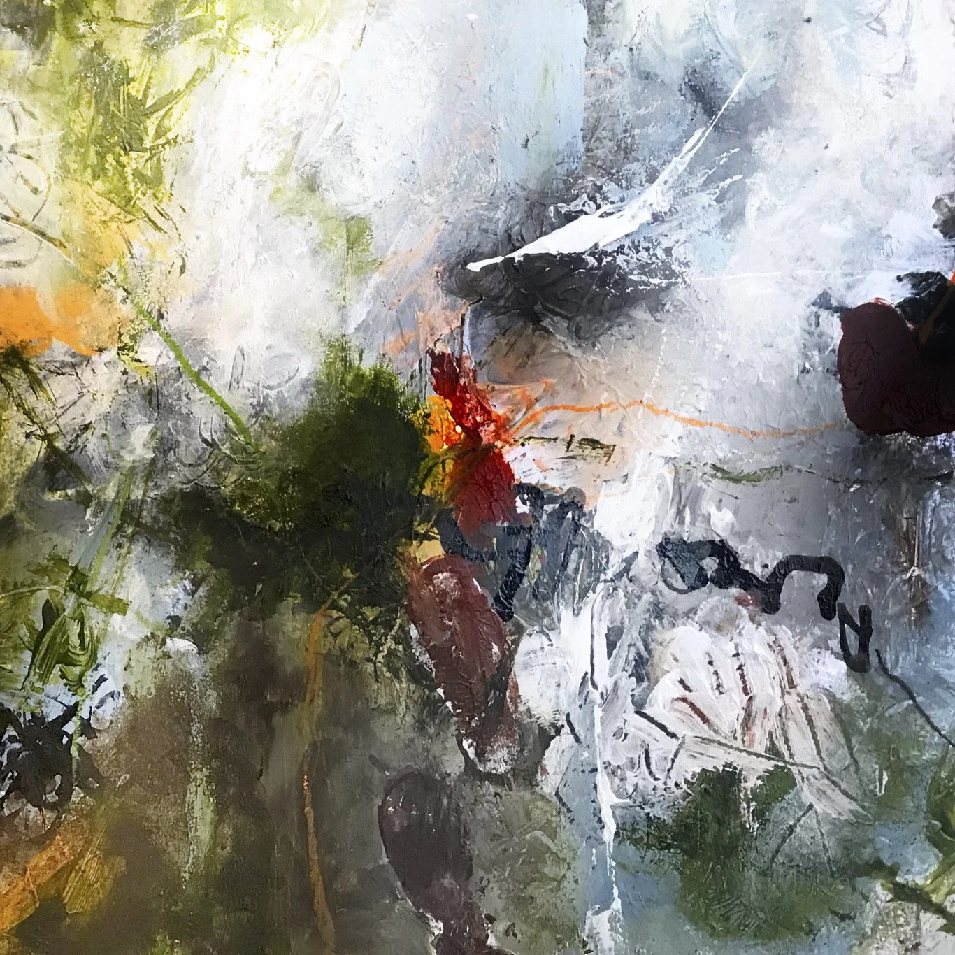 At that time we were in lockdown, socially distanced. The following large collage and mixed media works on linen canvas express the almost echoing numbness of isolation.